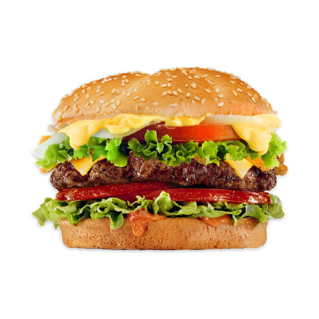 Sink your teeth into the irresistible Double Cheese Burger. Juicy beef patties layered with melted cheese, crisp lettuce, and tangy sauce, all embraced by a toasted bun. A flavor explosion that will leave you craving more. Get ready for burger bliss!