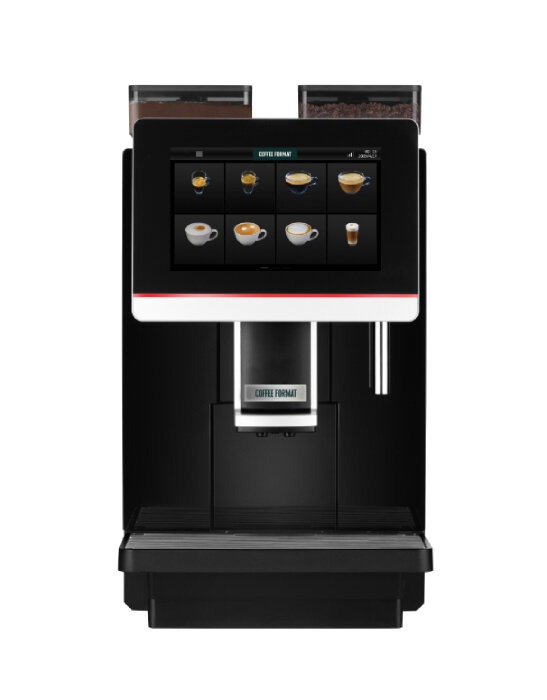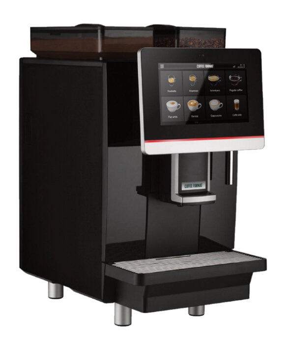 Automatyczny ekspres Coffee Format Demy to zaawansowane urządzenie stworzone z myślą o strefach samoobsługowych, takich jak punkty typu Coffee Spot. Ekspres umożliwia przygotowanie klasycznych kaw czarnych, szerokiej gamy napojów mlecznych z aksamitną pianką, a także napojów instant, w tym gorącej czekolady.